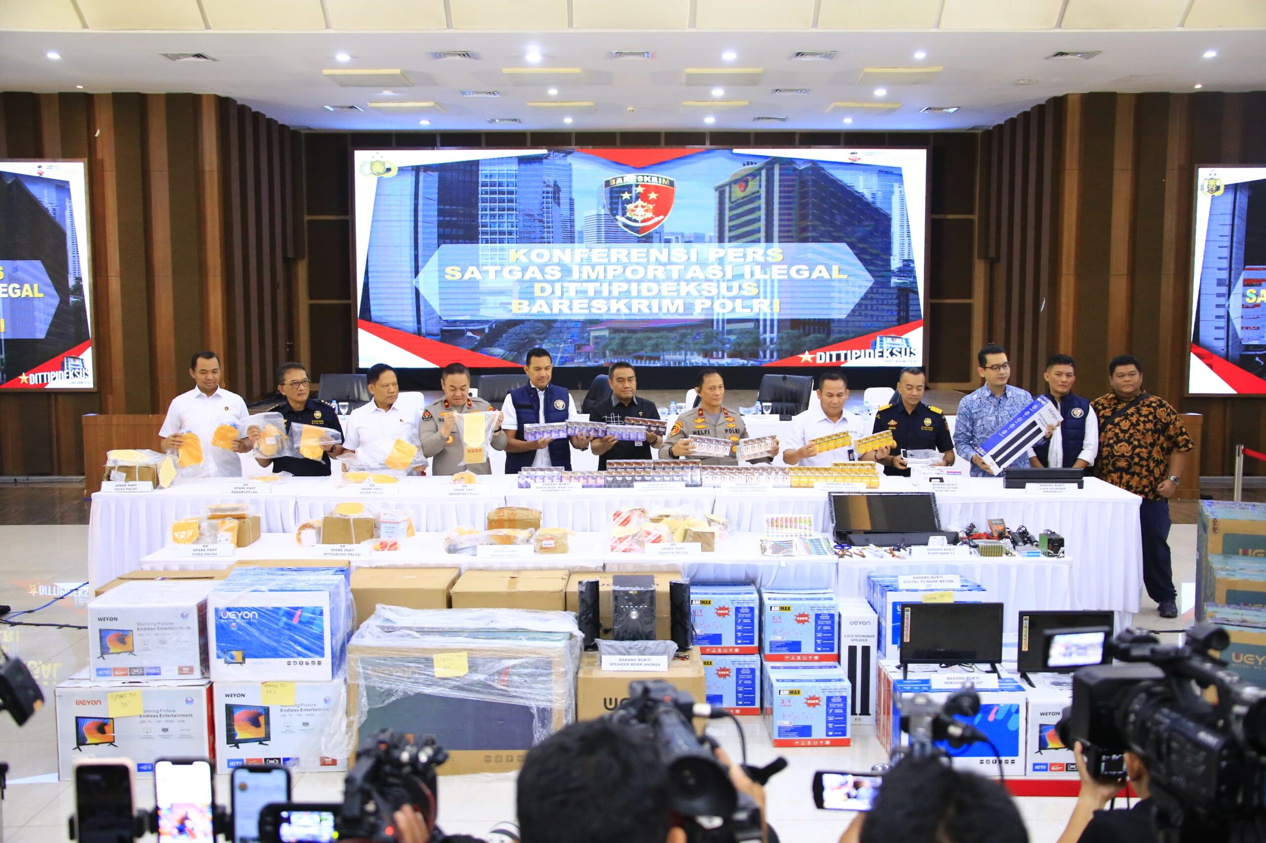 Tabloid Putrapos Jakarta — Direktorat Tindak Pidana Ekonomi Khusus (Dittipideksus) Bareskrim Polri melalui Satgas Penyelundupan mengungkap empat kasus impor ilegal selama periode tiga bulan terakhir. Penindakan ini dilakukan di daerah Jakarta, Jawa Barat, dan Banten.
