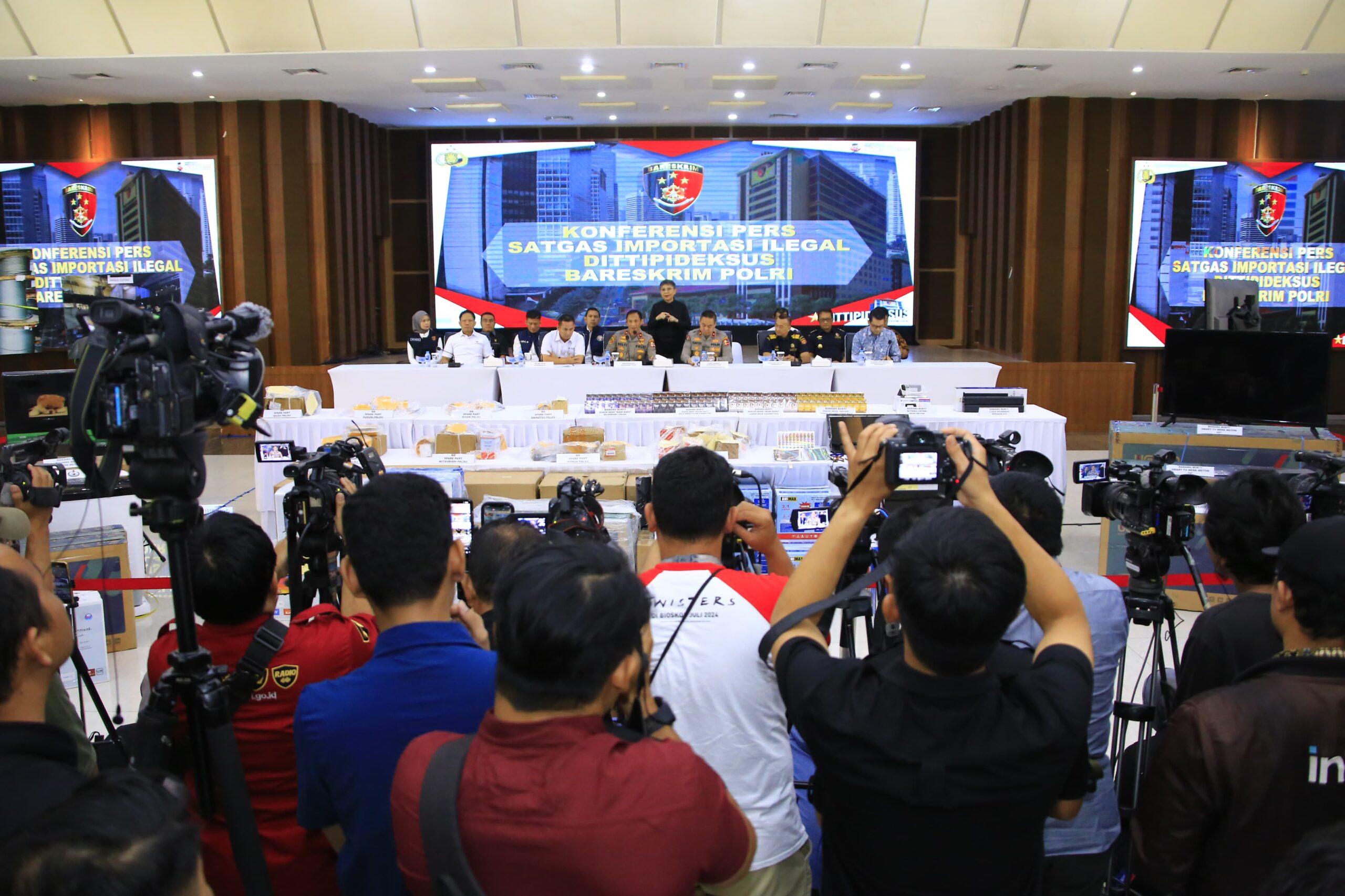 “Empat kasus penyelundupan berbagai jenis barang di Provinsi Jakarta, Banten, dan Jawa Barat dengan nilai barang sebesar Rp51.230.400.000 dan total nilai kerugian negara mencapai Rp64.257.680.000,” ujar Dirtipideksus Bareskrim Polri Brigjen. Pol. Helfi Assegaf di Mabes Polri, Jakarta Selatan, Selasa (4/2/2025).