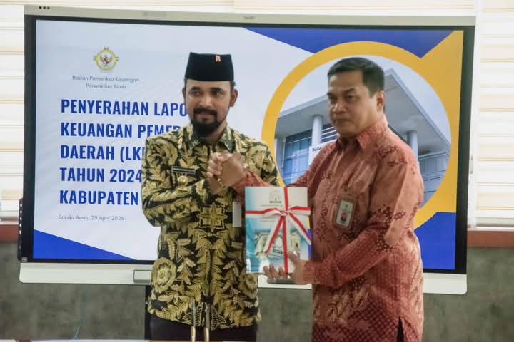 tabloidputrapos.com |Banda Aceh — Bupati Aceh Timur Iskandar Usman Al-Farlaky, S.H.I, M.Si menyerahkan Laporan Keuangan Pemerintah Daerah (LKPD) Unaudited Tahun Anggaran 2024 kepada Badan Pemeriksa Keuangan (BPK) Republik Indonesia Perwakilan Provinsi Aceh di Banda Aceh, Jumat (25/4/2025).