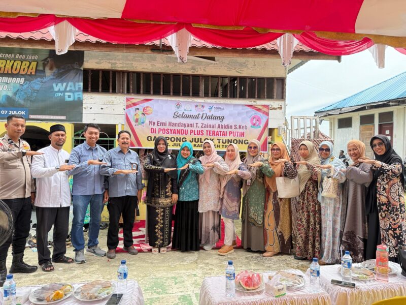 Tabloidputrapos.com|Aceh Timur –Dalam rangka memperingati Hari Kesehatan Nasional (HKN) sekaligus memperkuat komitmen terhadap upaya penurunan stunting, Istri Wakil Bupati Aceh Timur yang juga Staf Ahli TP PKK Kabupaten Aceh Timur, Ny. Bd. Erni Handayani T. Zainal Abidin, S.Keb, menghadiri kegiatan kunjungan rutin Posyandu Plus Teratai Putih di Gampong Julok Tunong, Kecamatan Julok, Aceh Timur. Kamis 06 Nov 2025.