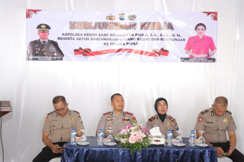 Tabloid Putra Pos | Kediri– Kunjungan kerja (kunker) Kapolres Kediri AKBP Bramastyo Priaji, S.H., S.I.K., M.Si. bersama Ketua Bhayangkari Cabang Kediri Ny. Ratih Bramastyo di wilayah Kecamatan Papar, Kabupaten Kediri menjadi ruang evaluasi sekaligus penguatan kinerja anggota di tingkat Polsek.