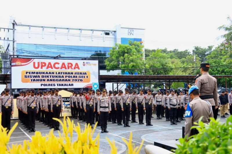 TAKALAR – Upacara penerimaan puluhan siswa Bintara Polri peserta pendidikan pembentukan (Diktukba) Gelombang I Tahun 2026 digelar di Lapangan Apel Mapolres Takalar, Kecamatan Pattallassang, Kabupaten Takalar, Sulawesi Selatan, Senin pagi, 27 April 2026.