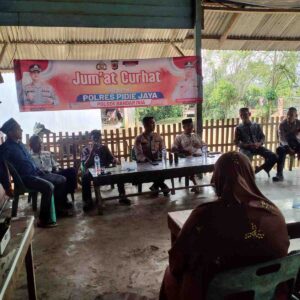 PIDIE JAYA – Kapolsek Bandar Dua, Ipda Taufikkurrahman, S.H., menggelar kegiatan Jumat Curhat bersama masyarakat Gampong Krueng Kiran dan Gampong Cot Keng, Kecamatan Bandar Dua, Kabupaten Pidie Jaya, pada Jumat (3/10/2025) pukul 14.30 WIB. Acara yang berlangsung di salah satu warung kopi Gampong Krueng Kiran ini dihadiri perangkat gampong, Panitia Pemilihan Keuchik (P2K), calon keuchik, serta tokoh dan masyarakat setempat.