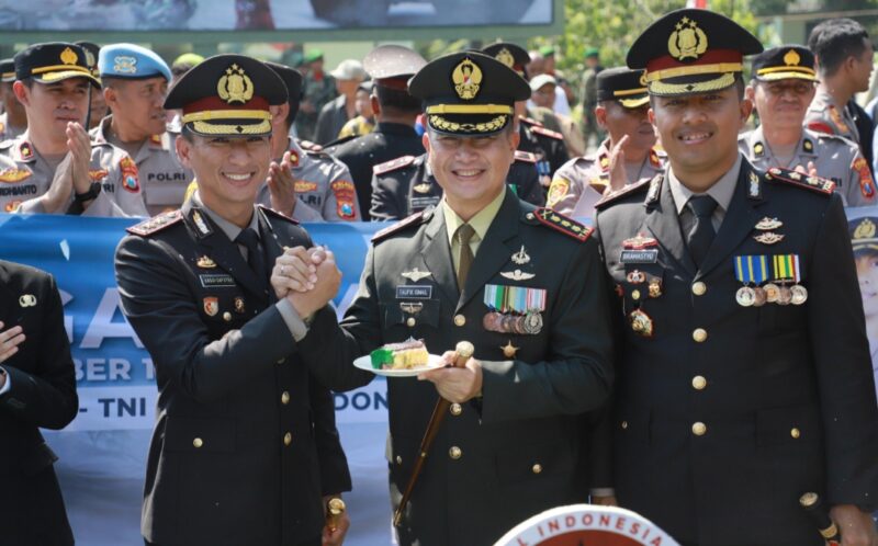Acara kemudian dilanjutkan dengan pemotongan tumpeng, pembagian kue ulang tahun, serta foto bersama antara jajaran TNI dan Polri. Momen penuh keakraban ini menjadi bukti kuat bahwa sinergitas TNI-Polri di wilayah Kediri tetap solid, kompak, dan selalu siap bersama rakyat demi Indonesia yang aman dan maju
