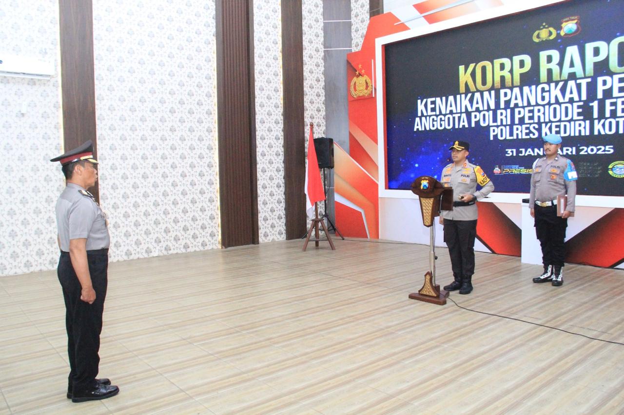 Tabloid Putra Pos| Kediri Kota – Polres Kediri Kota menggelar upacara Kenaikan Pangkat Pengabdian di Gedung Rupatama Polres Kediri Kota, Jum’at (31/1/2025). Upacara ini dipimpin Kapolres Kediri Kota AKBP Bramastyo Priaji, S.H., S.I.K., M.Si.