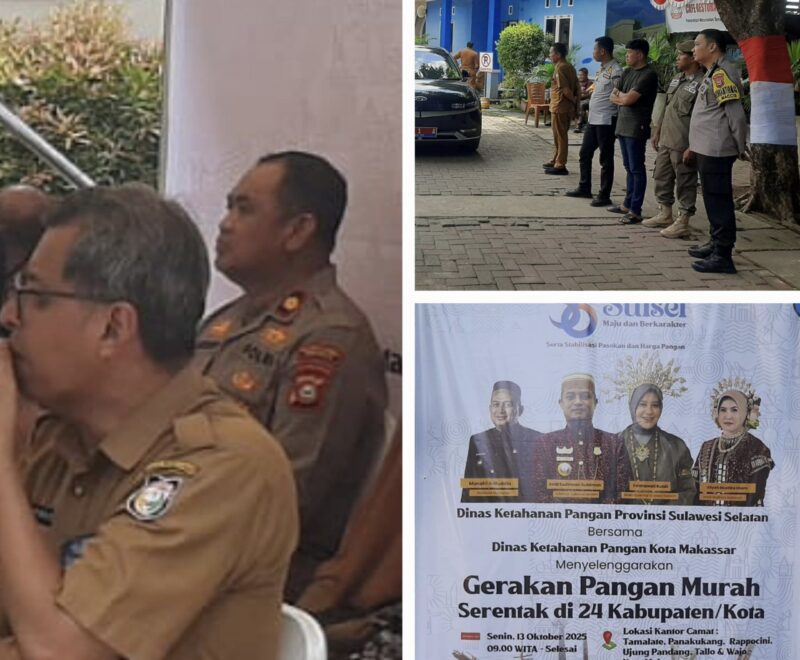 MAKASSAR – Kapolsek Tamalate, Kompol Syarifuddin.,S.Sos.,M.H. menghadiri kick off launching Gerakan Pangan Murah (GPM) serentak di 24 Kabupaten/kota untuk masyarakat yang digelar di kantor Camat Tamalate, kelurahan Maccini Sombala, Jl. Danau Tanjung bunga Makassar, yang di selenggarakan pada senin (13/10/2025). Kegiatan tersebut digelar oleh Dinas ketahanan Pangan Provinsi Sulsel bersama Dinas ketahanan Pangan kota Makassar, dalam rangka hari jadi Sulsel ke-356. untuk stabilisasi pasokan pangan dan harga pangan di Makassar.