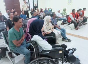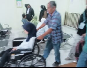 Poto : Tampak ayah Massyura sedang mendorong Massyura dengan kursi roda menuju ruang sidang(10/09/2025)
