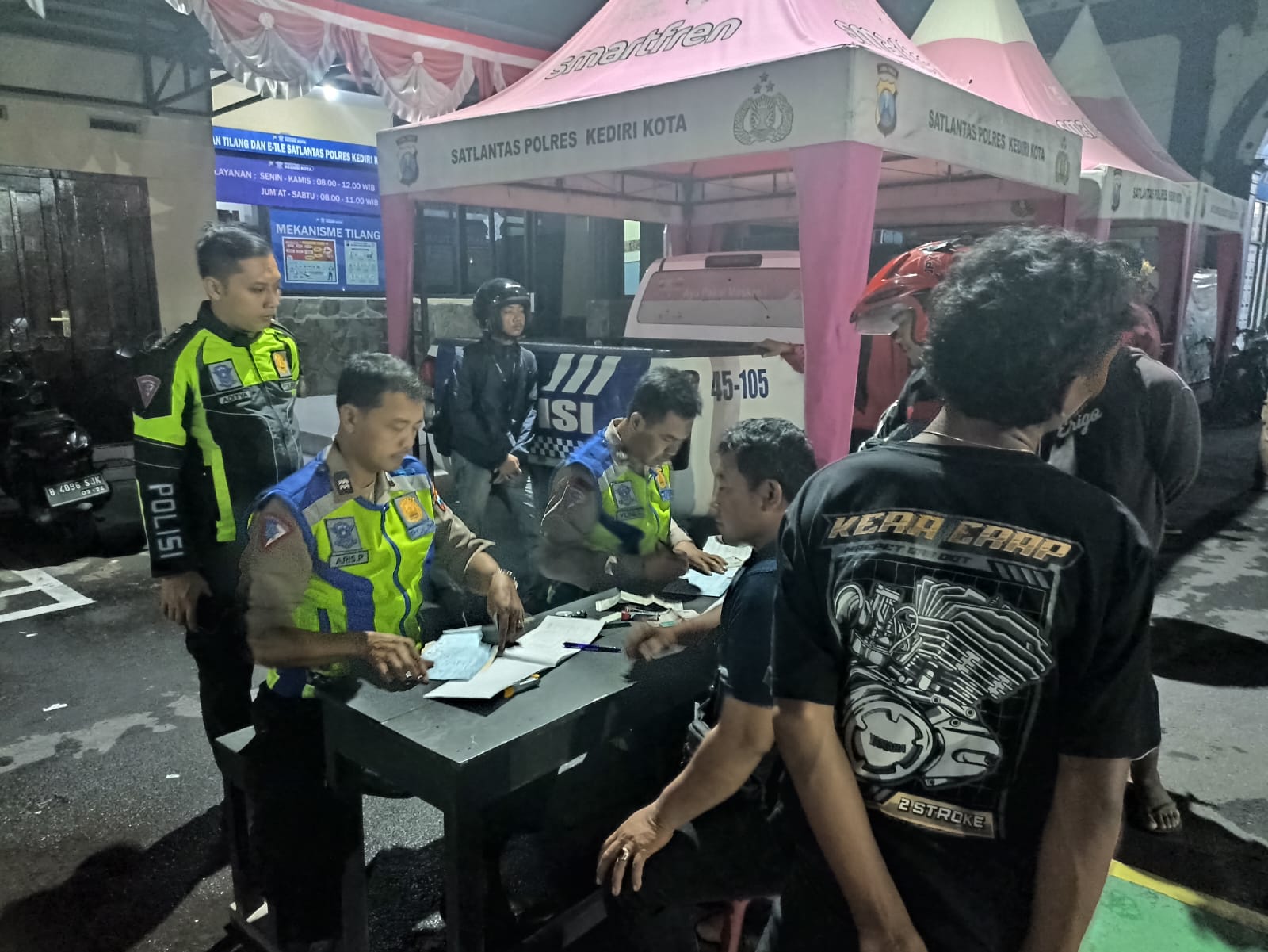 Minggu Dini Hari, Polres Kediri Kota Kembali Gelar Razia KRYD dan Cipta Kondisi di Depan Mako Satlantas
