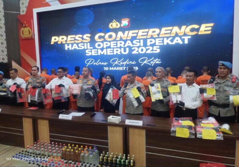 Tabloid Putra Pos | Kediri Kota – Polres Kediri Kota menggelar konferensi pers hasil Operasi Pekat 2025 selama 12 hari, sejak 26 Februari hingga 9 Maret 2025.