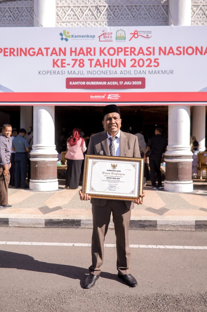 Ia menegaskan, penghargaan ini menjadi motivasi bagi Pemkab Pidie Jaya untuk terus mendukung suksesnya pelaksanaan program KDMP, yang merupakan bagian dari program nasional pemberdayaan ekonomi masyarakat.