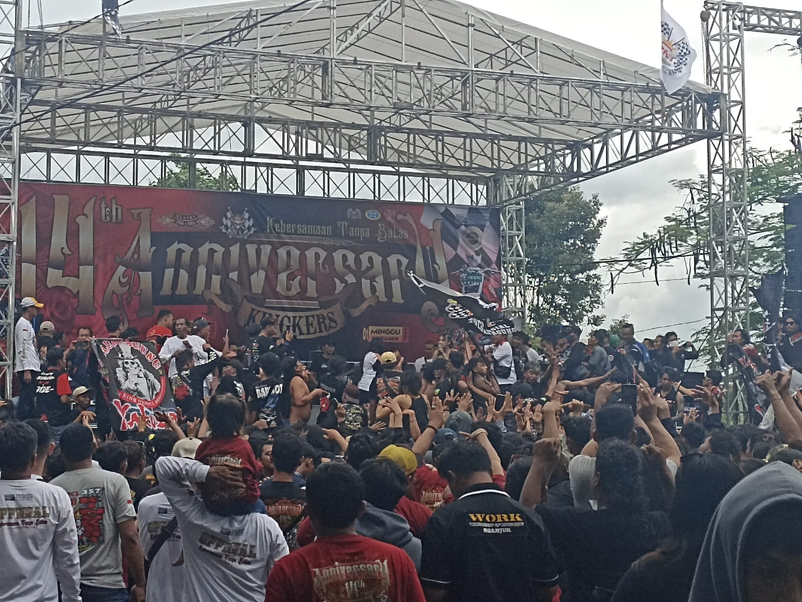 Tabloid Putra Pos | Kediri Kota – Acara bertajuk ” Anniversary 14 th Kingkers ” dengan hiburan Orkes Melayu ( OM ) di GOR Jayabaya Kediri, Minggu 1 Desember 2024 telah usai digelar. Hiburan musik dengan guest star ” Mintul Woko Channel” itu mampu menghipnotis dan menghibur penonton dengan lagu – lagu yang dinyanyikannya.