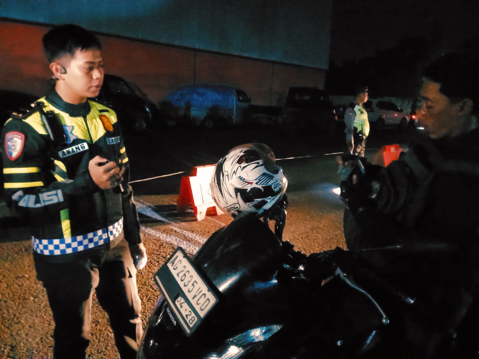 Dalam operasi itu petugas menghentikan/ menyetop semua kendaraan roda dua dan empat yang melintasi ruas jalan depan Gudang Bulog Banyakan, dan dengan humanis/ ramah serta sesuai SoP petugas menanyakan surat-surat kendaraan ( baik roda 2 maupun 4 ) pengendara.