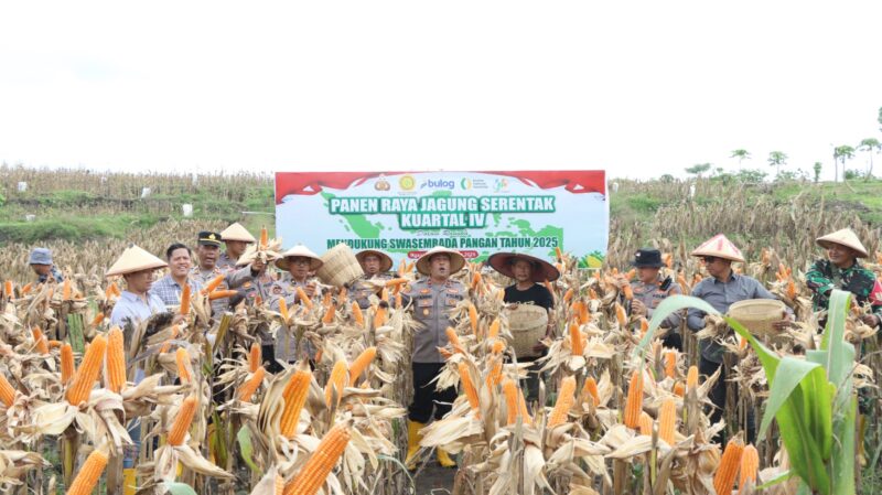 Tabloid Putra Pos | Nganjuk – Dalam rangka mendukung program swasembada pangan nasional tahun 2025, Polres Nganjuk turut serta dalam kegiatan Panen Raya Jagung Serentak Kuartal IV yang digelar di lahan perhutanan sosial Desa Sambikerep, Kecamatan Rejoso, Kabupaten Nganjuk, Kamis (6/11/2025).