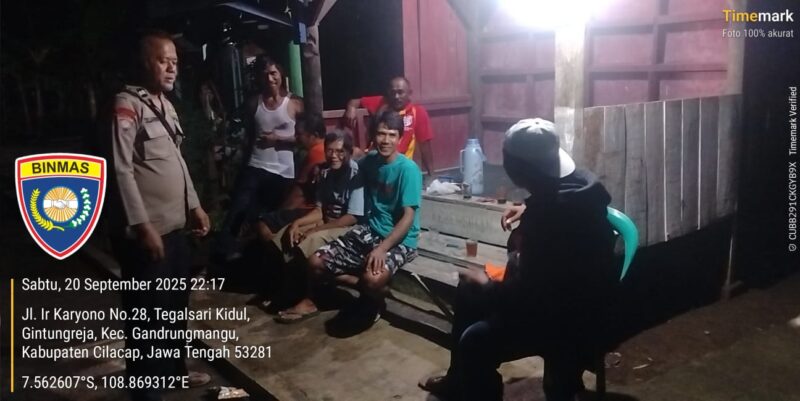 Upaya menjaga keamanan dan ketertiban lingkungan terus dilakukan Polsek Gandrungmangu. Bhabinkamtibmas Desa Gintungreja, Aiptu Sujarwo, melaksanakan Giat Optimalisasi Siskamling (Ronda Malam) bersama warga di Poskamling RT 01 Desa Gintungreja.