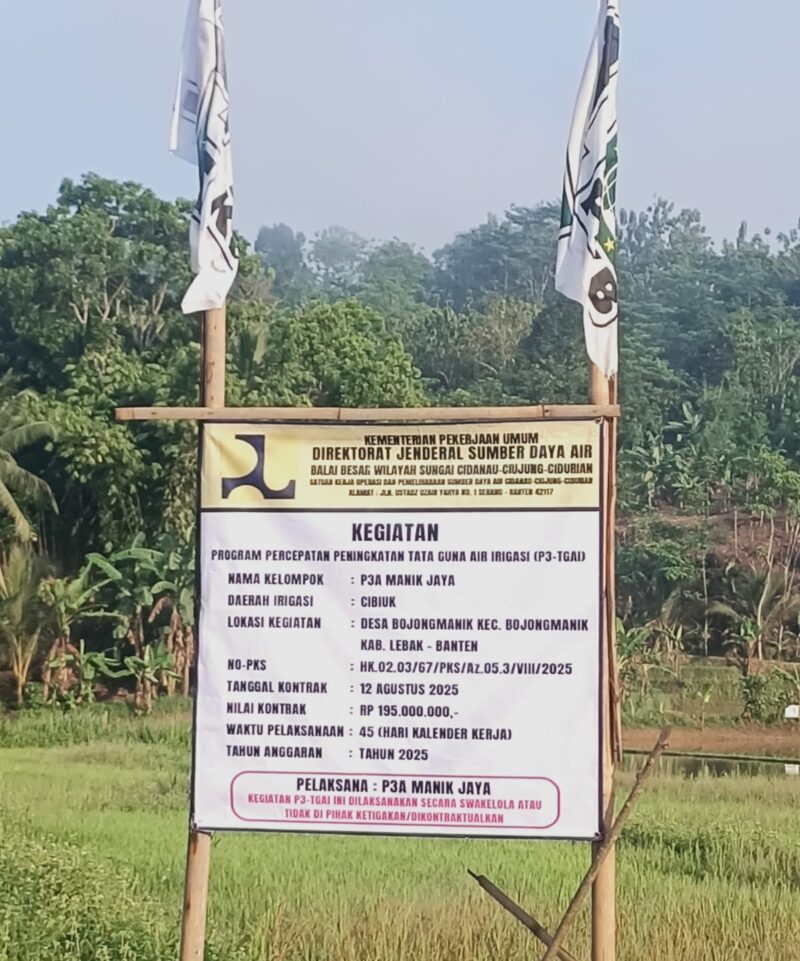 tabloidputrapos.com – Lebak – Program P3-TGAI adalah Program Percepatan Peningkatan Tata Guna Air Irigasi dari Kementerian Pekerjaan Umum dan Perumahan Rakyat (PUPR) yang bertujuan merehabilitasi dan meningkatkan jaringan irigasi melalui partisipasi masyarakat petani, sehingga meningkatkan hasil pertanian dan pendapatan petani.