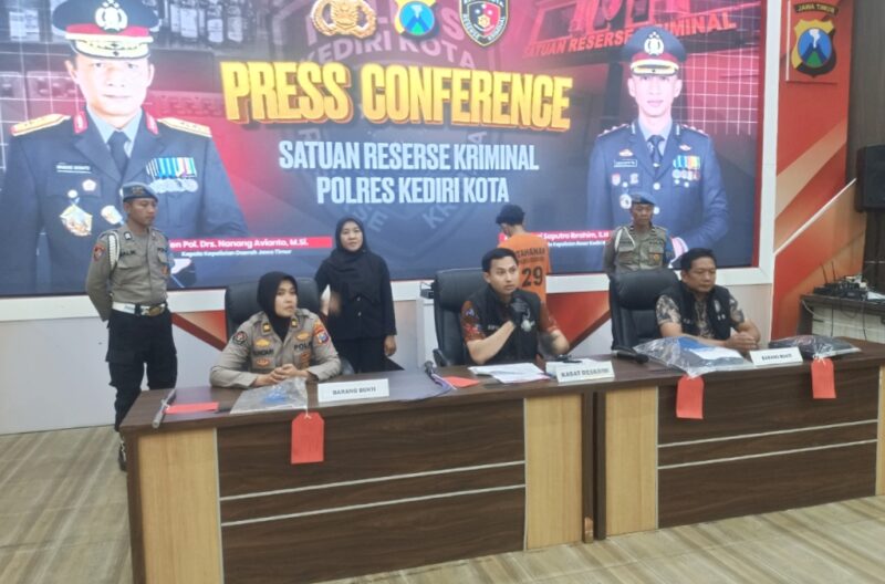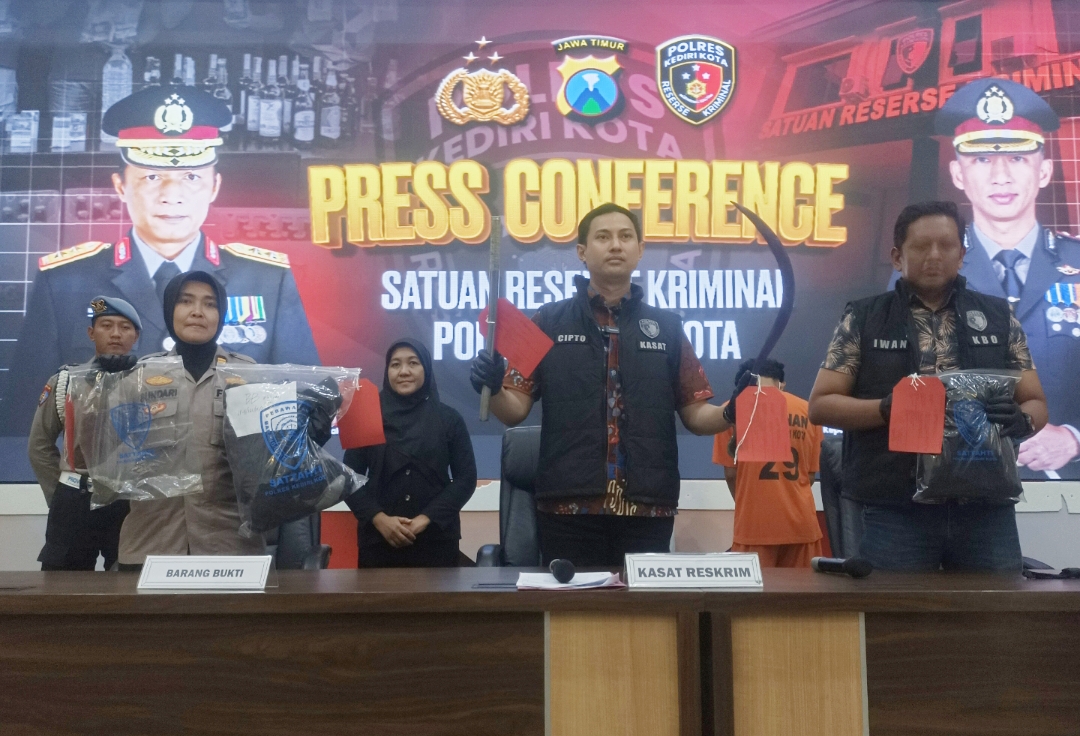 “Saat berpapasan pelaku meneriaki (Cah Opo We)/(Anak Apa kamu), lalu mengejar korban sampai depan dealer Yamaha Ngampel lalu memukul salah satu kawan korban dengan menggunakan double stik/Ruyung,” Kata Kasat Reskrim AKP Cipto Dwi Leksana, S.Tr.K., S.I.K., M.H.. saat konferensi pers di Mapolres Kediri kota ,Jum’at 26 September 2025.