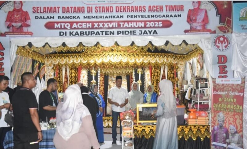 Tabloidputrapos.com | Pidie Jaya – Stand Dewan Kerajinan Nasional Daerah (Dekranasda) Kabupaten Aceh Timur ikut memeriahkan arena pameran Musabaqah Tilawatil Quran (MTQ) XXXVI Tingkat Provinsi Aceh yang dipusatkan di Kabupaten Pidie Jaya.