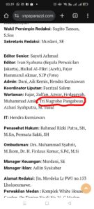 Di box redaksi tercantum nama jurnalis/wartawan Tri Nugroho Pangabean