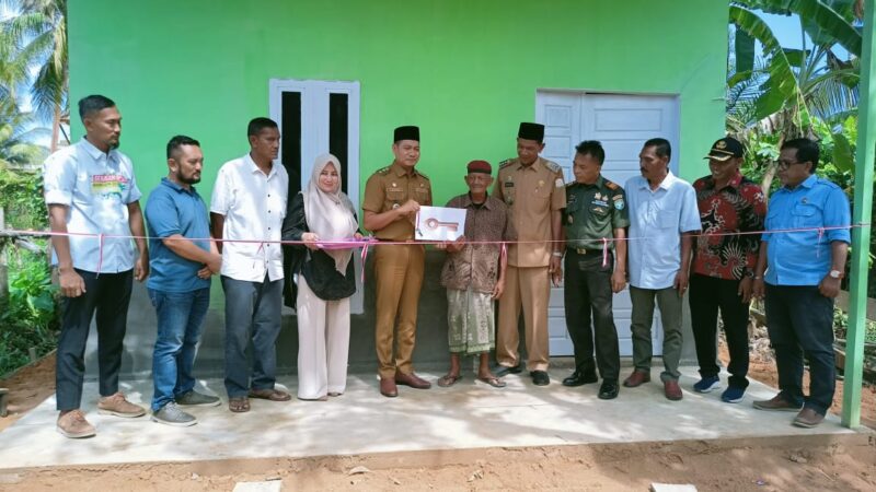 Di dampingi Muspika dan Perangkat Gampong setempat, T. Zainal menyerahkan rumah layak huni kepada Muhammad Gading (65) di Dusun Remaja Desa Gampong Baro.